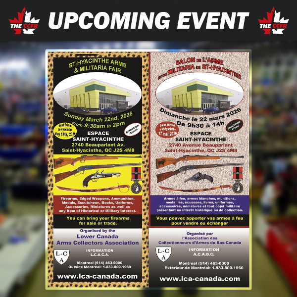 Come see the CCFR team and our good friends from the Lower Canada Arms Collectors Association at the Gun and Militaria Show in St-Hyacinthe, QC.